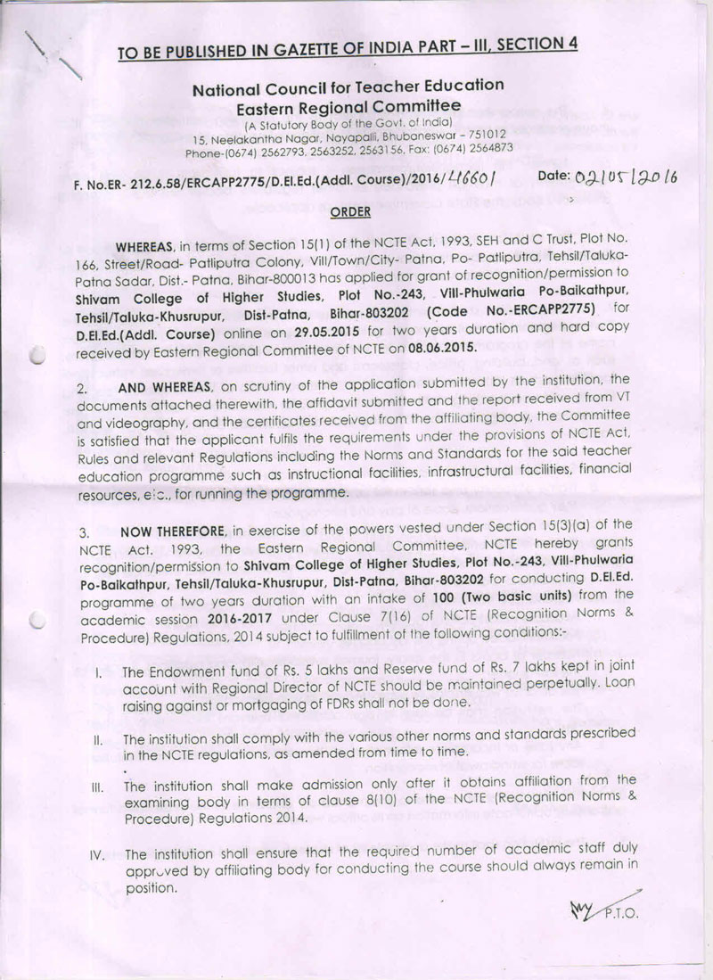 Recognition B.Ed.